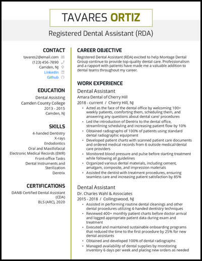 5 Best Dental Assistant Resume Dental Assistant Resume Examples Receptionist Jobs